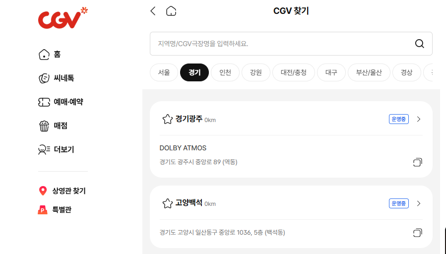CGV는 한국을 대표하는 영화관 체인으로, 최신 영화를 빠르게 상영하며 3D, IMAX 등 다양한 포맷을 지원하여 영화 팬들에게 최고의 관람 환경을 제공합니다. 패스트오더, 포토플레이 등의 서비스도 이용할 수 있어 편리합니다.