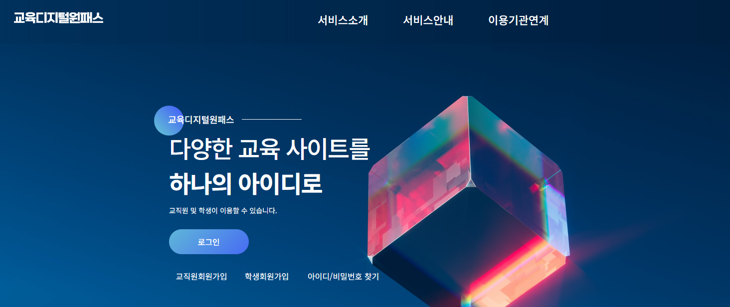 교육디지털원패스는 교육부 및 산하 기관, 그리고 주요 교육 관련 사이트들을 하나의 계정으로 이용할 수 있도록 만들어진 공공 통합 인증 서비스입니다. 복잡한 로그인 절차를 간소화해주고, 각종 인증 과정을 통합하여 제공하는 것이 가장 큰 특징입니다.